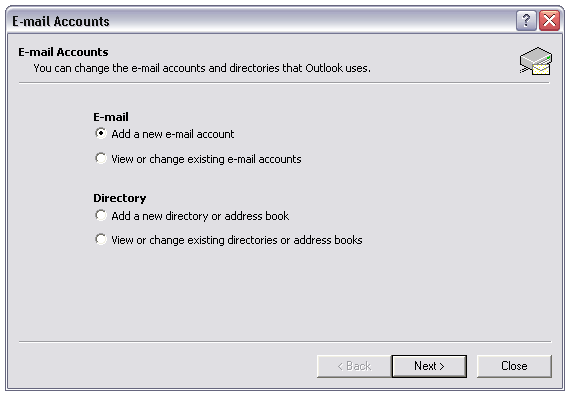 Microsoft Outlook 2000/XP/2003 E-mail Configuration Start Outlook (Microsoft Outlook 2002 is shown in these examples) and click on the toolbar Tools / E-mail Accounts...